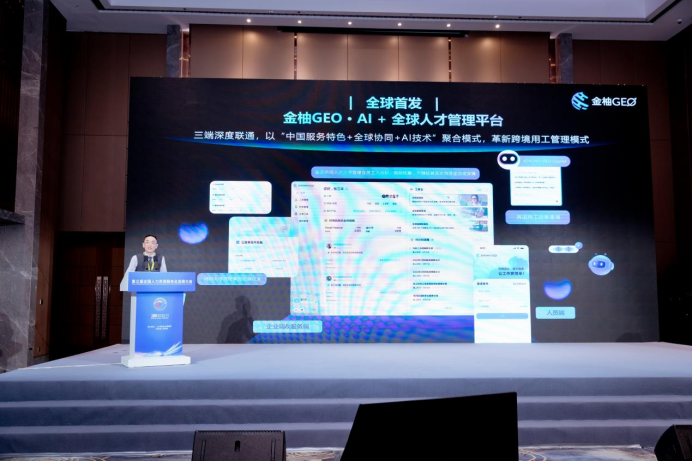 本届服发会重点举办“行业领军企业及重点用人单位路演”,今元集团旗下金柚GEO服务高级总监唐佳文深度解析中国企业出海用工解决方案,并正式宣布“金柚GEO・AI+全球人才管理平台”全球首发。这款全球化人力资源数字协同系统,正是金柚GEO回应行业“数字赋能”需求的核心成果,进一步助力企业全球化业务加速扩张。