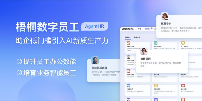 3)企业生产力场景:梧桐数字员工AgentHR,为企业低门槛引入AI新质生产力