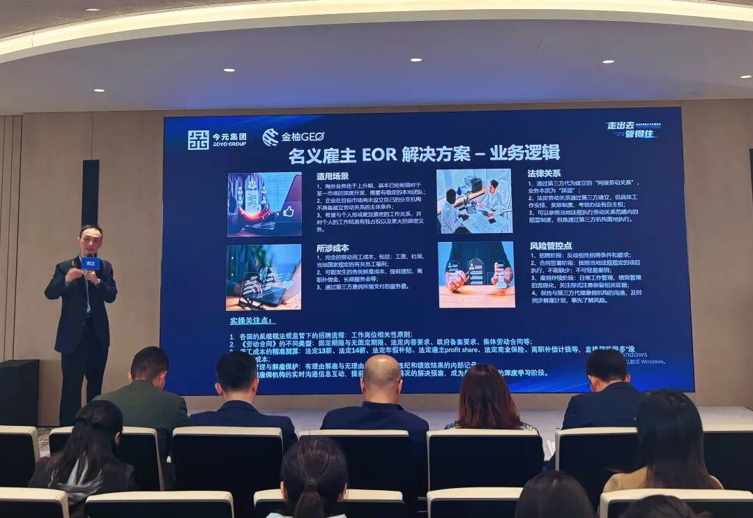 在本次沙龙上,今元集团旗下金柚GEO服务高级总监唐佳文以《中企出海不同用工模式的适用场景与风险剖析》为题,向与会企业揭示了跨境用工的“隐性成本陷阱”。他指出,很多企业出海初期只关注显性薪资成本,却忽略了目标国用工法规带来的额外支出,包括法定13薪/14薪、带薪年假、雇主分红、商业保险及离职补偿金等。以某智能制造客户为例,该企业进入欧洲市场后才发现,当地法定福利支出占总用工成本超30%,大幅超出预算,还伴随合规稽查与劳动仲裁风险。