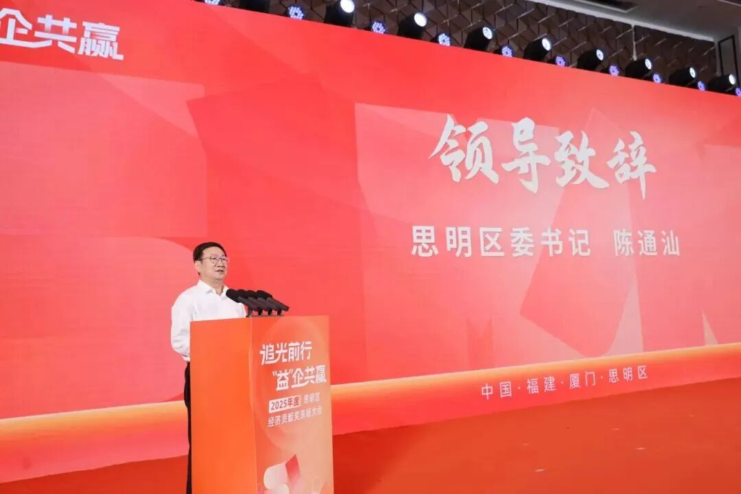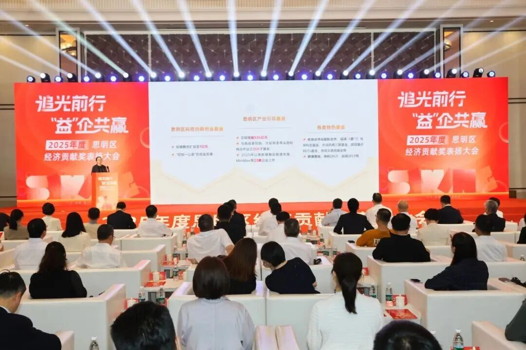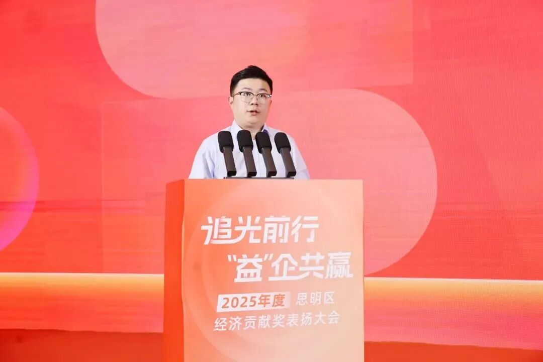 思明区作为厦门中心城区,以“财政+金融”融合升级为抓手,打造全链条金融服务体系,以创新生态滋养企业成长,连续多年领跑福建县域经济,是产业集聚、创新活跃的发展高地。思明区已连续多年举办经济贡献奖表扬大会,这既是区委区政府重商、亲商、安商的生动注脚,更成为政企深化交流、共谋发展的良好平台。会上,思明区委主要领导代表区委区政府,向受表扬的企业和企业家致以诚挚的祝贺和衷心的感谢。
