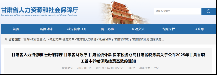 04 甘肃:2025年职工基本养老保险缴费基数下限4403元/月